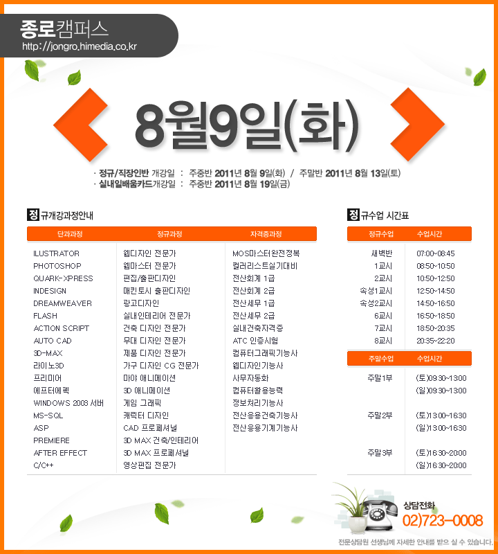 [정규개강] 2011년 8월 정규개강안내