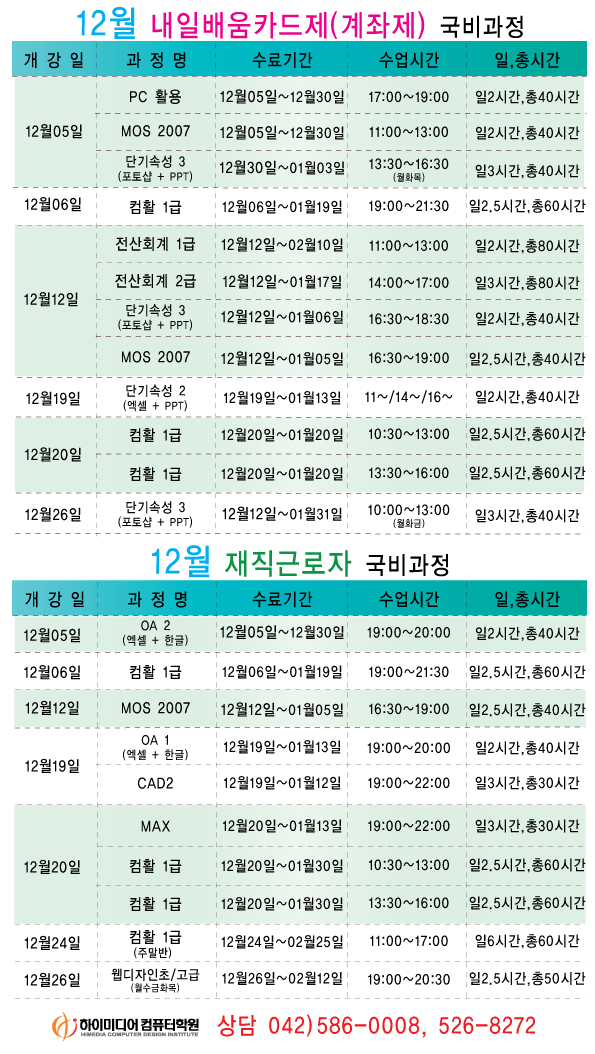 [정규개강]12월 개강일정입니다.(대전캠퍼스)