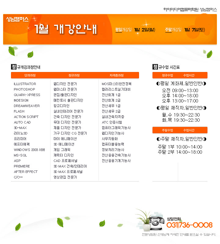 [공지]2012년 1월 개강 일정 안내