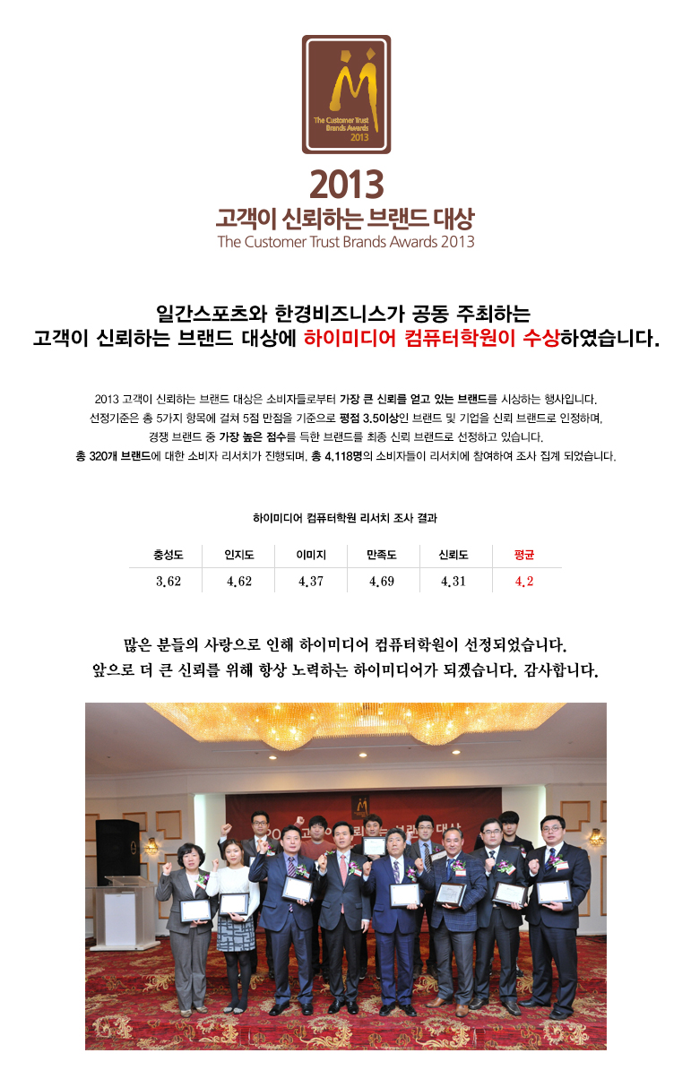 [공지] 하이미디어 컴퓨터학원 고객이 신뢰하는 브랜드 대상 수상