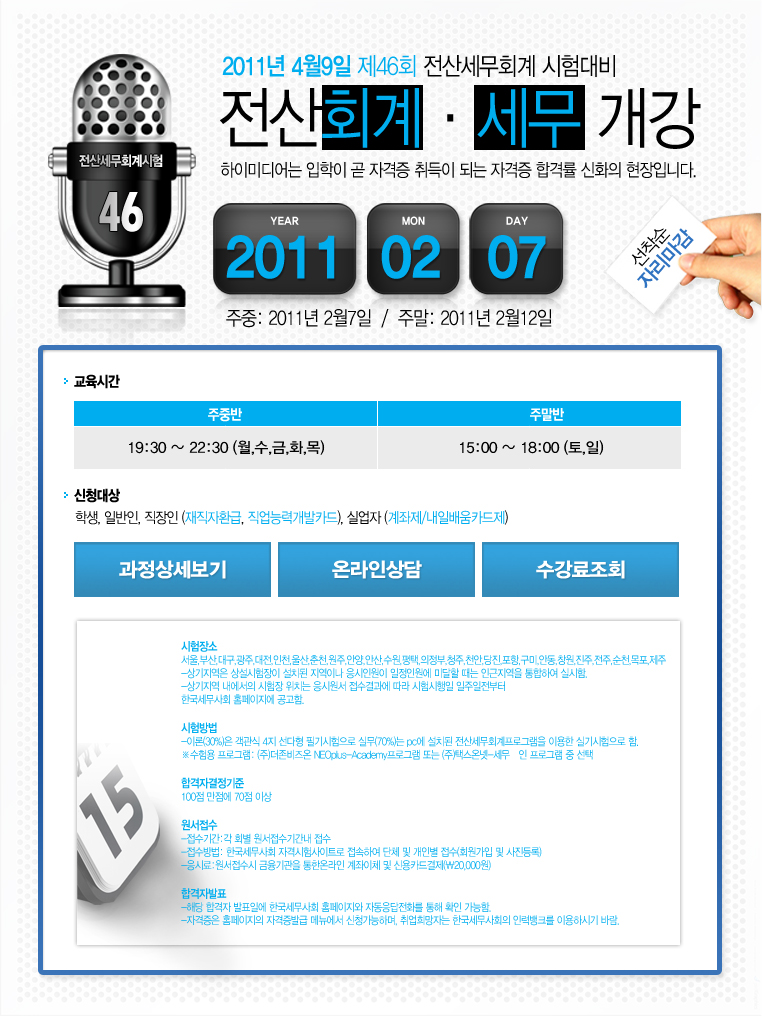[정규개강] 제 46회 전산세무회계 시험대비반 개강안내
