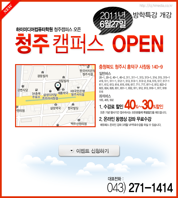 2011년 6월20일 청주캠퍼스가 오픈합니다.